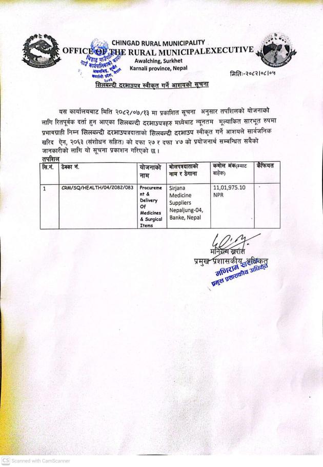 सार्वजनिक खरिद/बोलपत्र सूचना