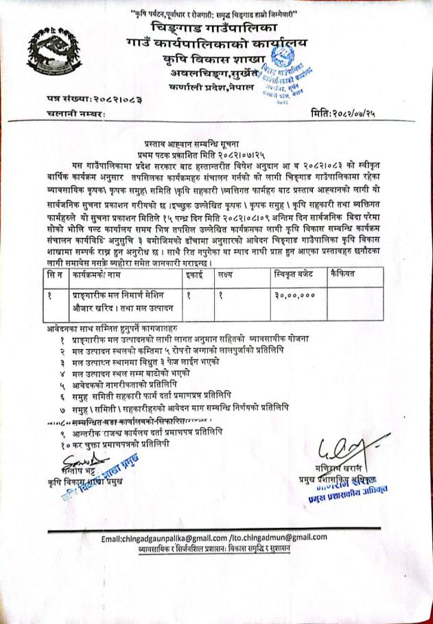 कुटानी पिसानी मिल लाभग्राही छनोट गरिएको सूचना ।