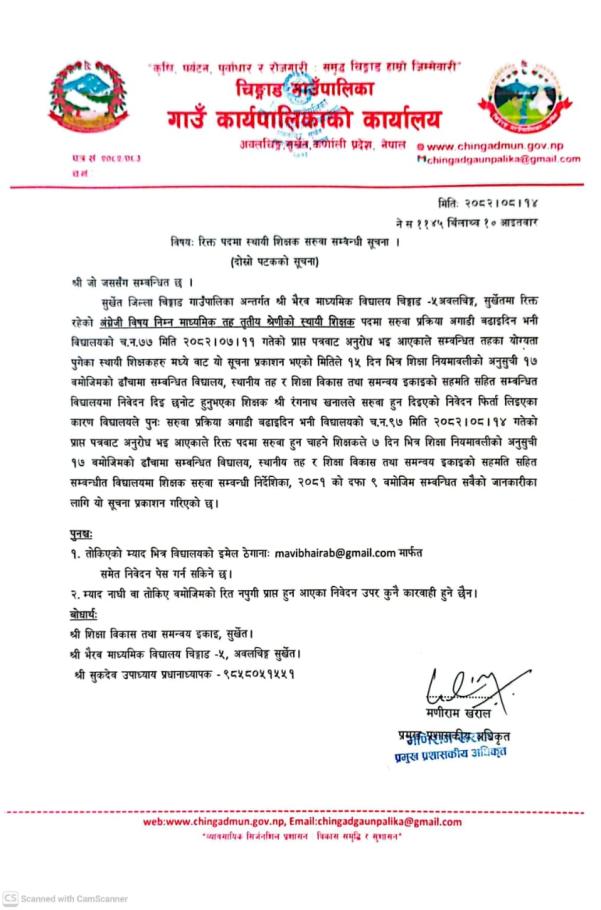 रिक्त पदमा स्थायी शिक्षक सरुवा सम्बन्धी सूचना ।(दोश्रो सूचना)