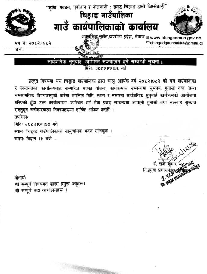 सार्वजनिक सुनुवाई कार्यक्रम सञ्चालन हुने सम्बन्धी सूचना ।