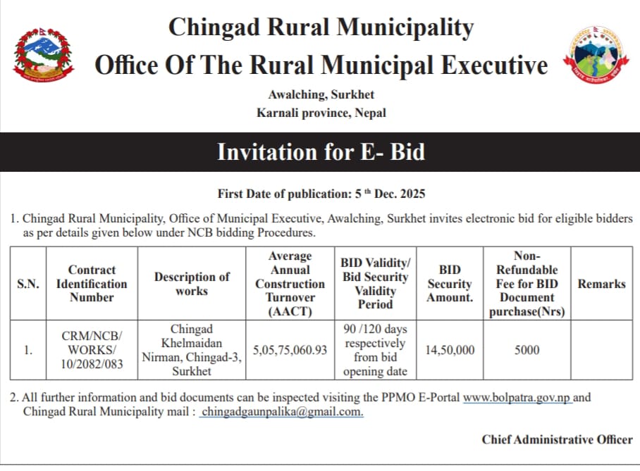 सार्वजनिक खरिद/बोलपत्र सूचना