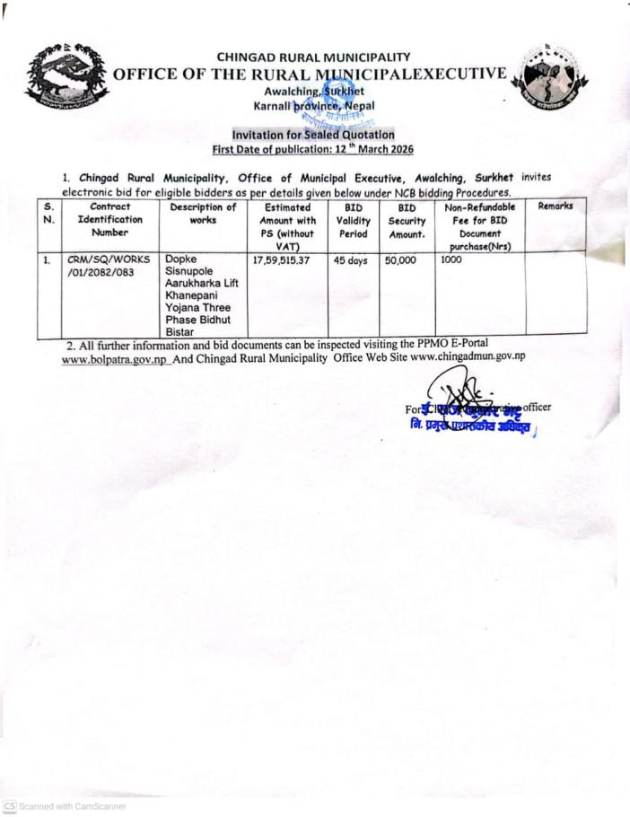सार्वजनिक खरिद/बोलपत्र सूचना